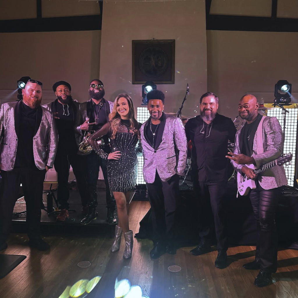 SPIKED is a six-member, high-energy crew with two vocalists, a guitarist, a sax player and drummer. The idea of a hybrid group came about with co-founder Bobby Craig, who’s also in another wedding band. “With just a band you’re kind of limited to a certain set list,” says Jonathan. Adding a DJ to the mix makes for a more cohesive performance, with more song freedom. A helmet covered in LED lights is just a fun bonus.