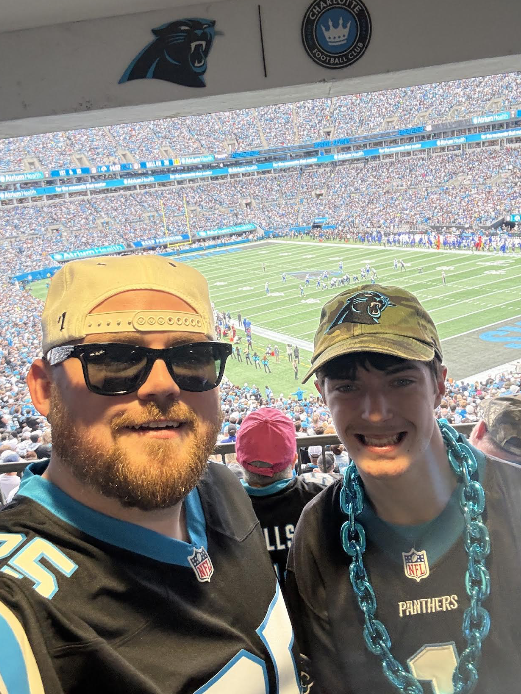 The halftime show on Saturday, Jan. 10 featured fireworks, dancers and stadium handrails that flashed with the beat of the music, playing out in front of 70,000 fans. The helmet’s LED lights make it 100% customizable, so Jonathan set it to display the Panther’s logo and motto, “Keep Pounding,” during the set. “It was electric,” he says.