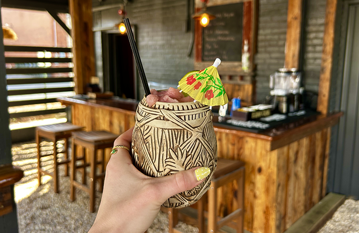 You can still get regular drinks from inside but expect any of the frozen drinks to come in a fun tiki-style cup complete with an umbrella, of course. Or, if you’re taking advantage of the social district, they can make yours to-go.