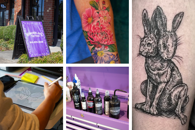 When we asked asked Kinga Ange, owner of Wonderland Tattoo Southern Pines, “What is trending in the tattoo world this year?” We expected a neat little list. Something like butterflies, barbed wire or a zodiac sign. Might we mention the scene kid fingerstache? Instead we were told that individuality is alive and well in the tattoo world. In the age of influencers and subscribing to the latest water bottle fad, hearing that people are inking outside the box was refreshing.