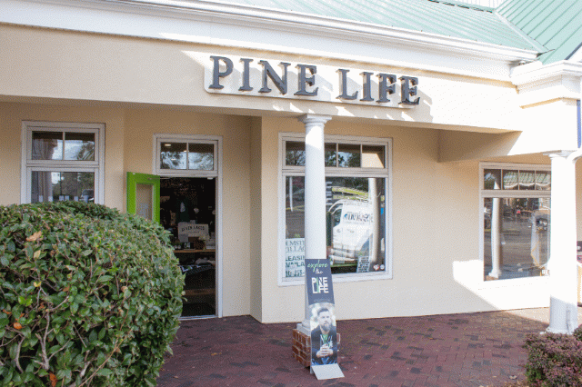 - You’ll still find gear in person at stores like Against the Grain Shoppe, Sun + Soul and Pine Scone Café. Stop in now through the end of January for your last chances to shop without a screen. In the meantime, tag your photos to continue spreading the legacy like pine straw in the wind.