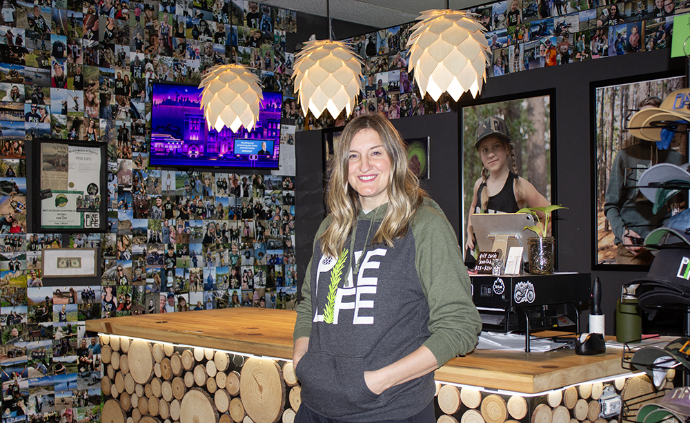 The brand has a mission to help plant trees for every shirt sold. Since launching in 2017, over 20,000 t-shirts have been sold and 5,000 trees planted, something Stephanie is really proud of. The brand has been spotted all over the world, from Jamaica to Hawaii. Photos from customers in Pine Life gear are showcased on the back walls, Stephanie’s favorite part of the shop. “I want to emphasize how important this community is, because they’ve built this brand,” she says.