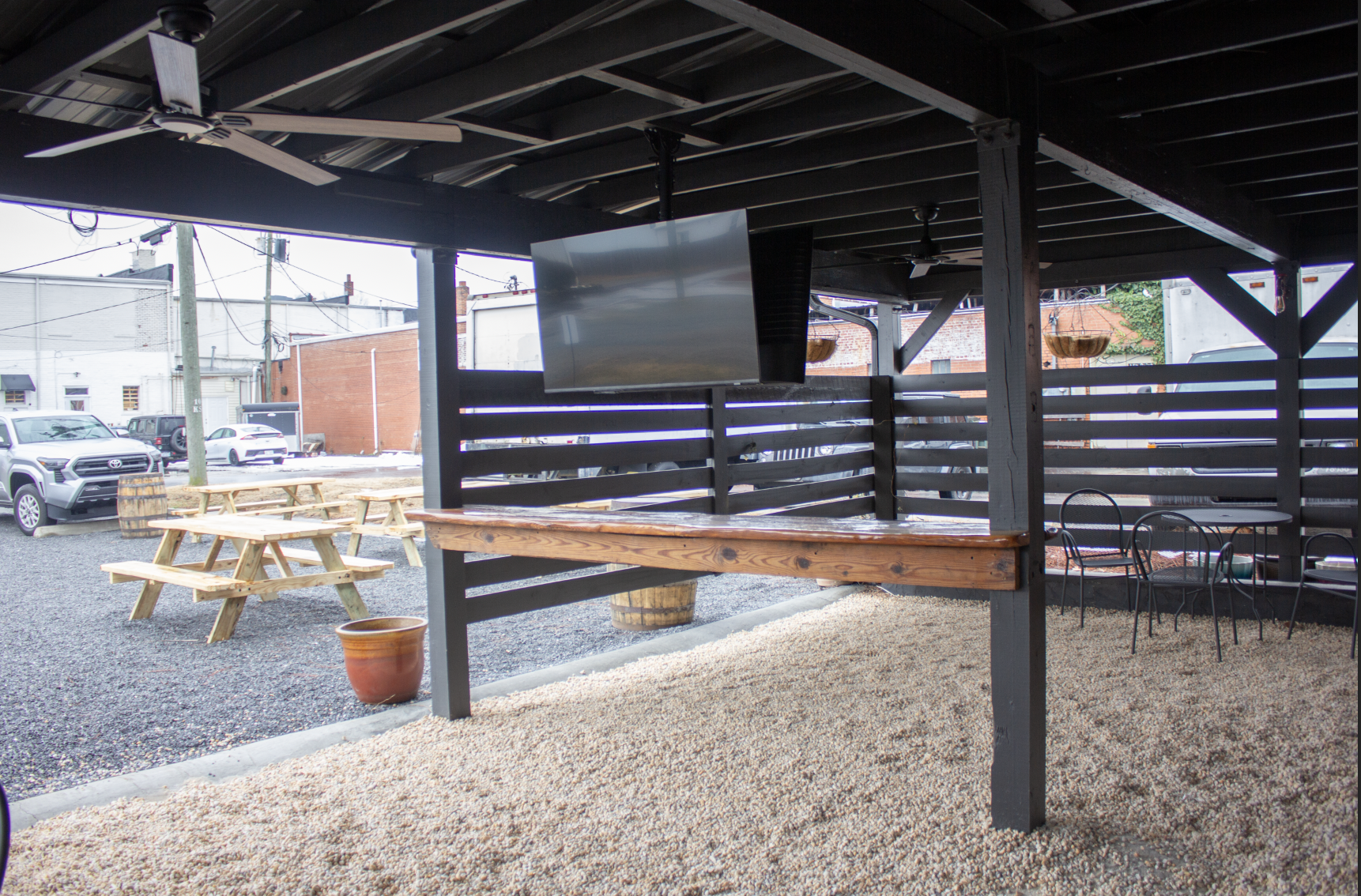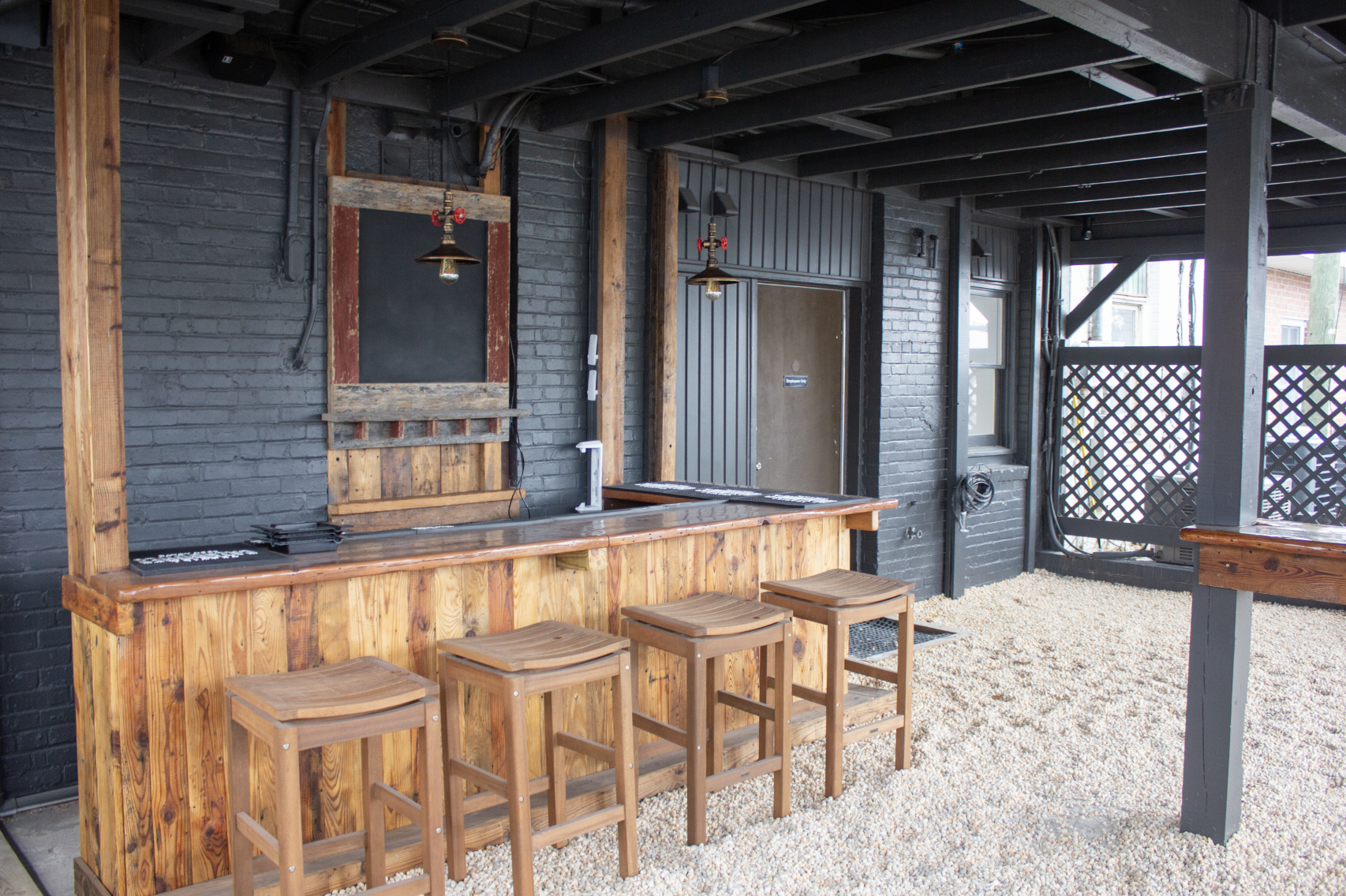 Also available are cigars to smoke on the back patio. Nate’s goal for that space was a lively, fun ambience with picnic tables, yard games (coming soon) and room for standing and mingling. The back patio will ramp up during the warmer months. “It’s nice that it’s off a main road, too,” he says.