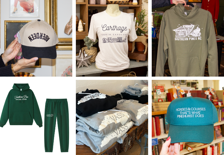 - Shirts and hoodies are available in multiple colors at The Southern Pines Welcome Center. Grab a postcard while you’re there.