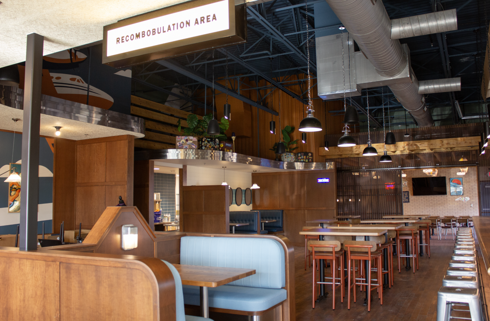 Although this is just a sneak peek, the space, you’ll see, leans into a retro aviation theme. Travel is one of Jim’s passions, and aviation landed in his heart; his son is a pilot and he even met his wife on an airplane. With the location just down the road from the airport, all the plans took off.